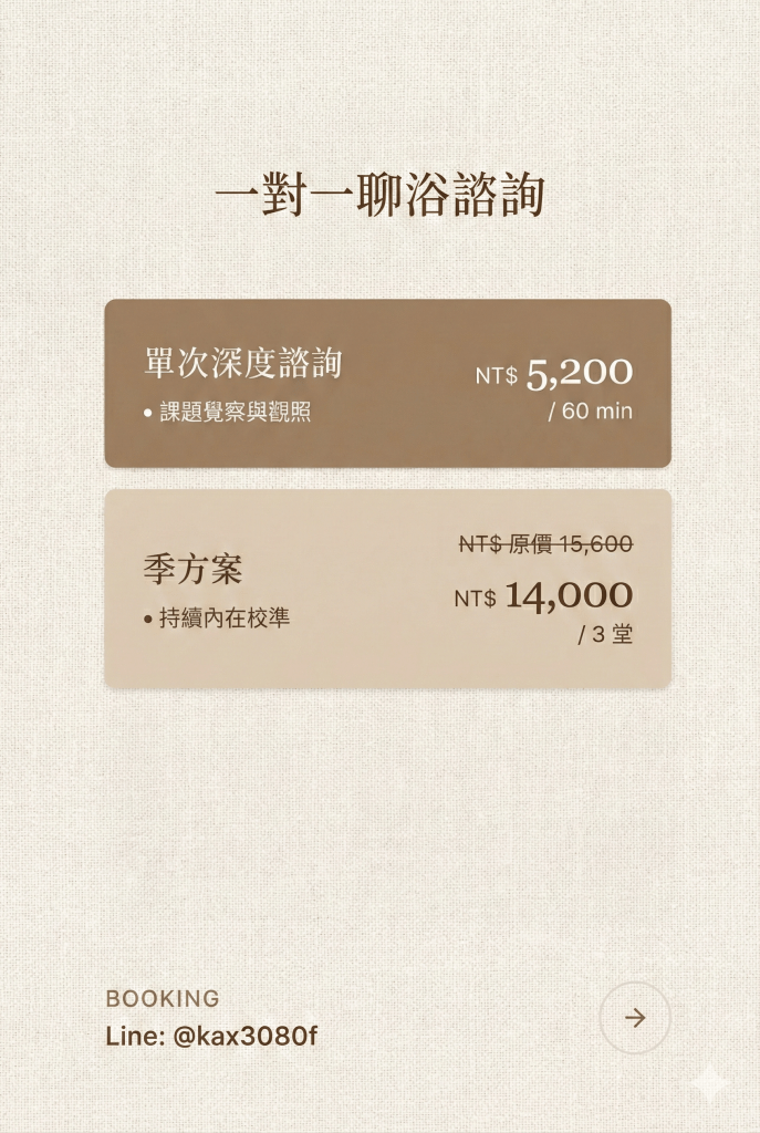 Seema提供一對一聊浴與課程。 協助個案透過認識自己,重新回到內在中心。